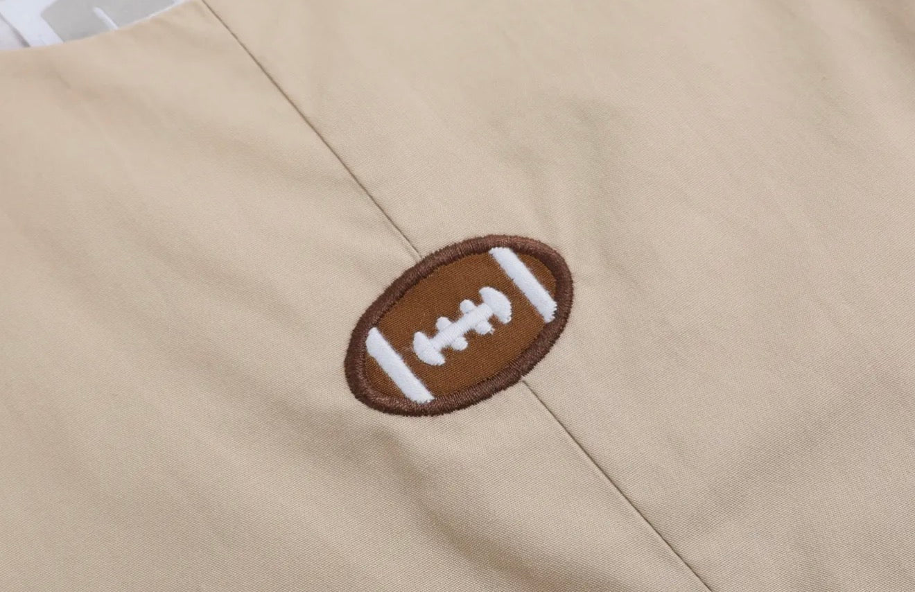 Light Brown Football Appliqué Overalls