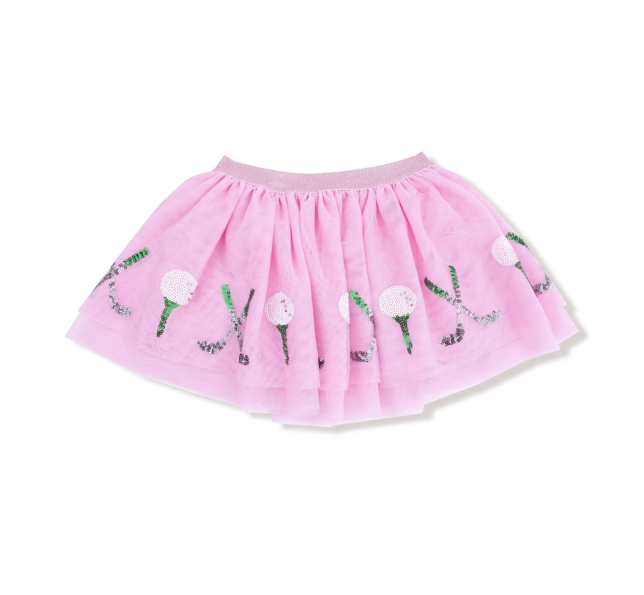Fore! Your little one will be the cutest golfer on the green with our Golf Tutu. Decked out with sparkling sequin golf balls and clubs, this tutu adds a sporty sparkle to every twirl. The pink sparkly waistband brings just the right pop of shine, making it perfect for playdates, birthday parties, or tee-time dress-up fun.